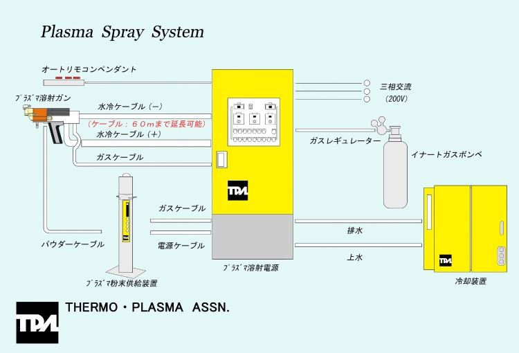 プラズマ溶射システムプラズマ溶射システムは以下の機器から構成されています。 |