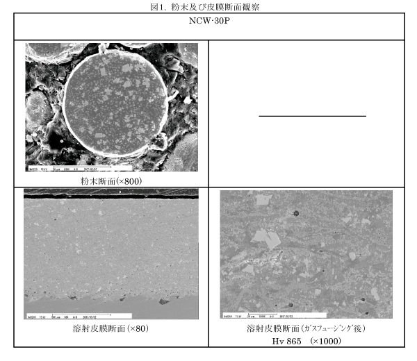 この材料は、Ni基自溶性合金粉末粒内部に炭化物セラミックスを混入させ、溶射皮膜を作製したときに炭化物セラミックスが皮膜全体に均一に分散するように設計された溶射材料である。